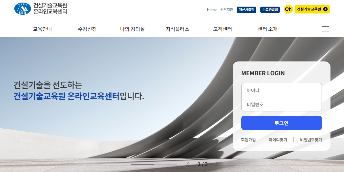 건설기술교육원 온라인 교육센터 (https://ekicte.or.kr)