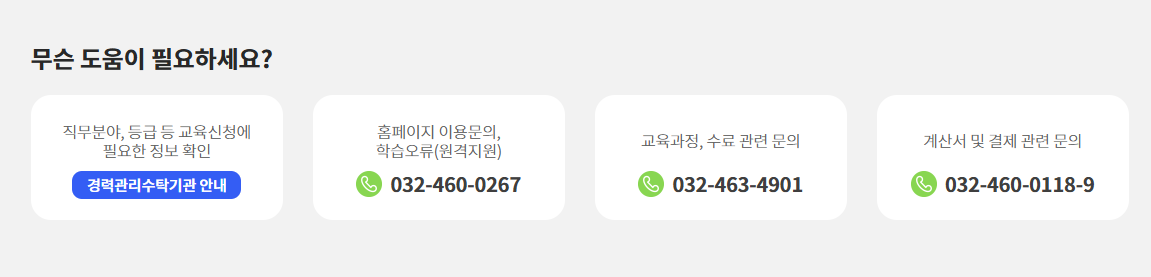 - 교육 과정 및 수료 관련 문의: 032-463-4901