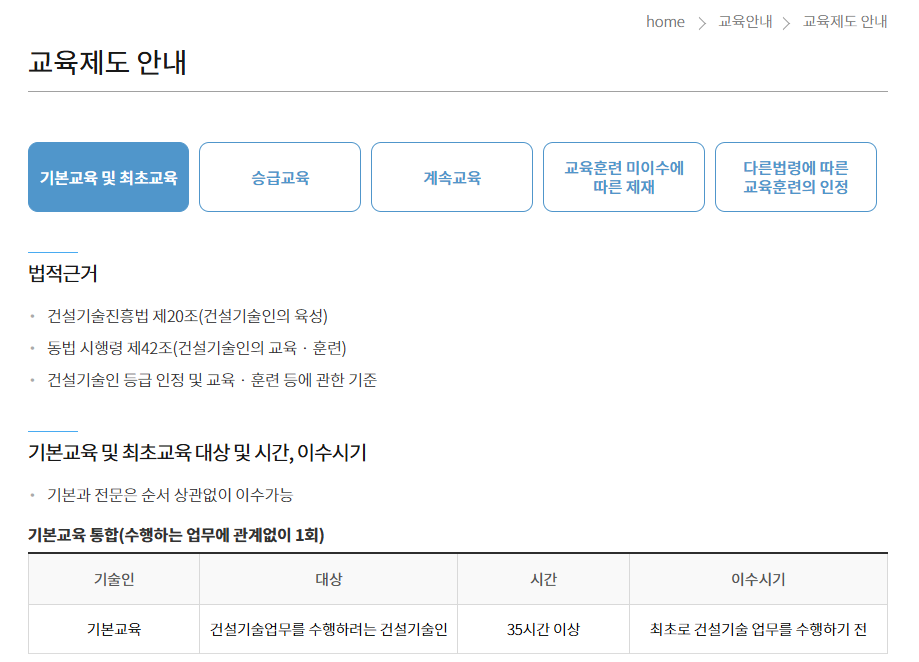 - 계속교육 과정: 건설기술인 등록을 유지하기 위한 필수 교육으로, 일정 주기에 따라 이수가 필요합니다.