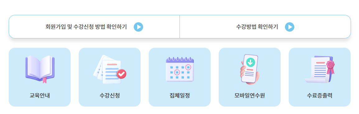 - ‘교육안내’ 메뉴에서 본인에게 맞는 과정 확인