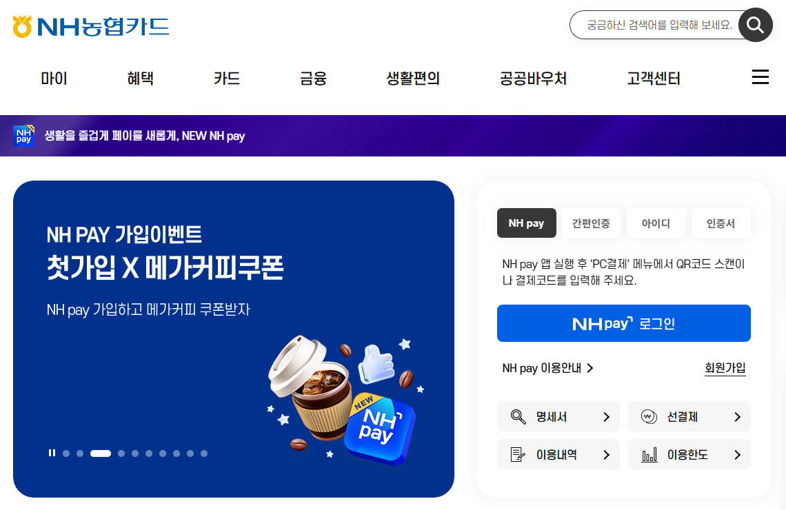 농협카드 홈페이지는 NH농협카드 고객을 위한 온라인 통합 금융 플랫폼으로, 개인 및 법인 회원 모두 카드와 관련된 다양한 업무를 비대면으로 처리할 수 있는 곳이에요.