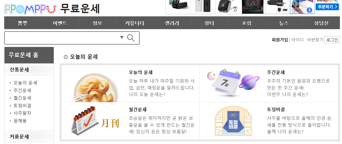 뽐뿌 무료운세 홈페이지 (ppomppu.co.kr/fortune/)