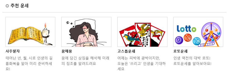 운세가 너무 진지하지 않아 부담 없이 즐길 수 있는 것이 이 섹션의 가장 큰 매력이에요.