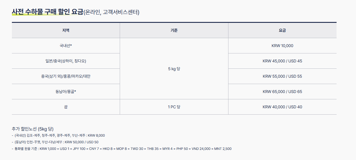 - 사전 구매 수하물 할인 – 홈페이지 예약 시 사전 구매 수하물 요금 할인