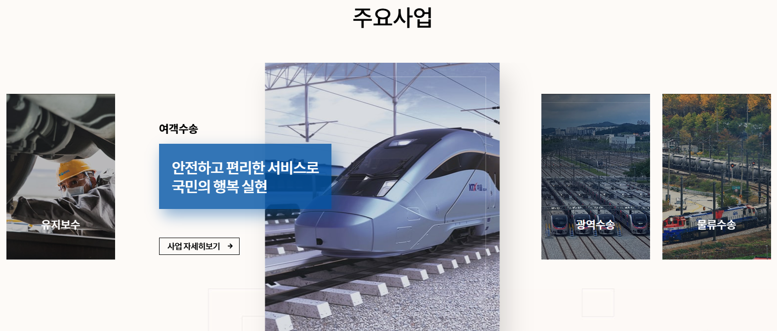 한국철도공사의 사업은 단순히 열차 운행을 넘어서 다양한 분야에 걸쳐 있습니다. 홈페이지에서는 아래와 같은 핵심 사업들을 소개하고 있습니다.